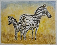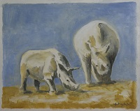 uns die Welt vermehrt durch eine Glasscheibe zu betrachten. Im vorliegenden Bild sieht der Betrachter auf die Fensterbank eines schon betagten Fensters. Im linken Teil des Fensters ist ein Rotkelchen zu sehen, das auf dem Fensterrahmen sitzend durch das Fenster blickt. Im rechten Teil des Fensters dient ein altes Einkaufsglas als Vase für einen großen Strauß Kornblumen. Da die improvisierte Vase nicht für alle Blumen reicht, liegen einige auch wahllos auf der Fensterbank. Der Strauß ist symptomatisch für unseren Umgang mit der Natur. Anstatt die Kornblumen dort stehen zu lassen, wo sie jeden erfreuen und sie sind nun wirklich keine Blume für eine Vase, werden sie einfach gepflückt, auch wenn sie dadurch nur noch kurzzeitig leben. Und natürlich im Übermaß,wie unser allgemeiner Umgang mit der Natur. Der Blick durch das Fenster zeigt eine lebensfeindliche Landschaft und setzt sich aus titan-weißen, kobalt-blauen und neapel-gelben Flächen zusammen. Die Äste der Bäume sind nur schwach zu erkennen. Ein schmaler Streifen zeigt die Hauswand mit ockerfarbenen Ziegeln. Fenster und Fensterbank sind mit Vandyckbraun in groben Strichen angedeutet und unterstreichen so den verwitterten Zustand ihrer weißen Farbe. Die Szene auf dem Fensterbrett liegt im Schatten und lässt das Weiß des Fensters eher grau erscheinen, im Gegensatz zum kräftigen Orange des Rotkehlchens und dem Grün-Blau der Kornblumen. Die perspektivische Darstellung des Fensters unterstreicht die räumliche Tiefe des Bildes. Das Bild steht für die Zerbrechlichkeit von Flora und Fauna. Noch können wir Menschen einen Teil unserer Zeit ohne Fenster verbringen. Wer aber garantiert uns, dass nicht eines Tages viele Lebensformen nur noch hinter Fenstern leben können, so wie es Raumfahrer derzeit auf einer Raumstation tun und wie lange lässt sich dies aushalten? |