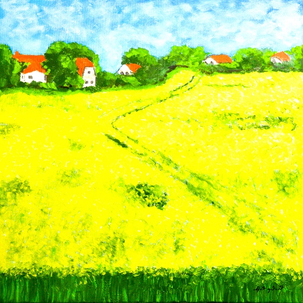 Rapsfeld am Dorfrand