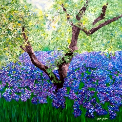 Olivenbaum im Lilienfeld 100 x 100 cm, XL Keilrahmen Öl auf Leinwand Das Bild zeigt einen Olivenbaum der inmitten eines Feldes voller violett-blauer Lilien steht. Olivenbäume kennt jeder, der schon einmal die Gegend um das Mittelmeer bereist hat. Diese knorrigen Gebilde prägen zusammen mit Wein, Feigen und Zitrusfrüchten die mediterrane Landschaft. Die über 150 verschiedenen Olivenarten werden ebenso liebevoll behandelt wie Wein und stehen dem auch preislich nicht nach. Die Olive wird daher auch als das grüne Gold des Südens bezeichnet. |