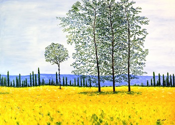 Felder im Frühling 100 x 140 cm Öl auf Leinwand, Keilrahmen Als Vorlage habe ich das Bild Felder im Frühling von Monet gewählt. Mich interessiert an diesem Motiv besonders das Licht. Früher, zur Osterzeit, bin ich oft in der Altmark durch die Felder gegangen. Fernab jeden Lärms spürte ich die Wärme der Frühlingssonne, während hoch im Himmel die Lerchen sangen. Dieses Bild habe ich bis heute in meiner Erinnerung bewahrt. Und immer wenn der Frühling kommt spüre ich die Lust auf einen Spaziergang fernab jeder Betriebsamkeit. Früher, zur Osterzeit, bin ich oft in der Altmark durch die Felder gegangen. Fernab jeden Lärms spürte ich die Wärme der Frühlingssonne, während hoch im Himmel die Lerchen sangen. Dieses Bild habe ich bis heute in meiner Erinnerung bewahrt. |