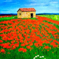 Mohnfeld in der alpinen Provence 80 x 80 cm XL Keilrahmen Öl auf Leinwand |