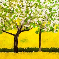 Obstbäume im Rapsfeld 70 x 70 cm XL Keilrahmen Öl auf Leinwand |