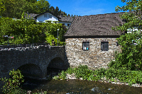 Viele kleine und große Höhlen durchziehen die Kalkfelsen, aber nur die Reckenhöhle ist für Besucher freigegeben. In ihr erschließt sich dem Betrachter die wunderbare Welt der Stalatiten und Stalagmiten. Durch das Tal verkehrt in beschaulichem Tempo die Hönnetalbahn, ein roter Schienenbus, auf der Strecke Menden - Balve - Neuenrade. |