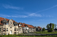 Kloster Oelinghausen Das Kloster liegt eingebettet in einer Landschaft aus Wiesen und Feldern am Fuße eines bewaldeten Gipfels, der Kalle Lieth (370 m). Um 1170 als Doppelkloster gegründet, war es ab 1280 ein Frauenstift. Aus der Zeit stammt auch die erste Kirche, die im 14. Jahrhundert als Kreuzkapelle in einen größeren Kirchenbau integriert wurde, so wie er sich in der heutige Form noch zeigt. |