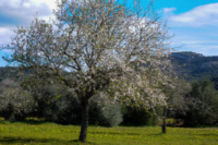 Auf Mallorca gibt es rund sieben Millionen Mandelbäume. Je nach den klimatischen Bereichen unterscheidet man etwa 120 verschiedene Mandelbaumarten. Die Bittermandelbäume haben rosa und die Süßmandelbäume weiße Blüten. Man findet sie über die ganze Insel verteilt, aber je nach Region zeitversetzzt zwischen Ende Januar und Anfang März. Ein prächtiges Farbspektakel. Die Mandelbäume kamen im zehnten Jahrhundert durch die Mauren nach Mallorca. Die Mandel war bis zur Mitte des neunzehnten Jahrhunderts ein Exportartikel. Doch inzwischen hat der internationale Markt dafür gesorgt, dass die Mandelhaine verwildern. |