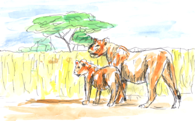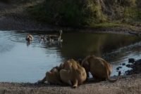 ![]() Eine Löwin mit ihrem Nachwuchs |
