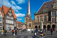 Außerdem befindet sich hier das gotische Rathaus mit einer Renaissancefassade und der Bremer Dom. Vor dem Rathaus steht eine Skulptur der Bremer Stadtmusikanten des Künstlers Gerhard Marcks von 1953. Das Schnoorviertel ist vermutlich der älteste Siedlungskern Bremens. In der Bötcherstraße befindet sich das Paula Moderson-Becker Museum. |