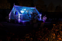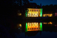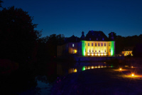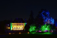 Schloss Dyck - Parknächte Auch wenn ich schon einige Illuminationen besucht habe, diese Parknacht war wirklich ein Erlebnis. Alle Möglichkeiten, die Örtlichkeiten und Technik hergaben wurden ausgenutzt. Bei Einbruch der Dunkelheit führt ein beleuchteter Weg rund ums Schloss durch den Park. |