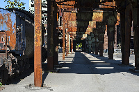 Henrichshütte Hattingen 150 Jahre lang arbeiteten bis zu 10.000 Menschen an diesem Ort. Hier wurden Koks, Eisen und Stahl hergestellt. Eisen und Stahl wurden teilweise auch durch Walzen und Schmieden weiterverarbeitet. 1987 erfolgte der letzte Hochofenabstich. |