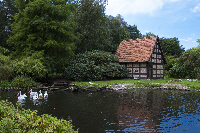 Leider sind viele Tiere nur hinter Gitter zu fotografieren. Eine Notlösung: Mit möglichst langer Brennweite und weit geöffneter Blende ganz nah am Gitter verschwindet es fast vollständig. Der Park ist nicht nur die Heimat der vielen Vogelarten, sondern er ist auch sehr liebevoll angelegt. So findet zusätzlich das eine oder andere Malmotiv. |