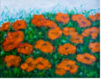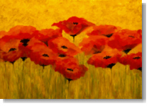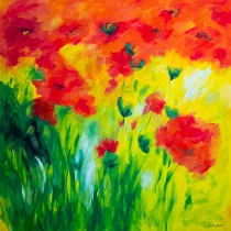 Mohnblumen im Kornfeld 50 x 70 cm, Keilrahmen Öl auf Leinwand Das Bild zeigt mehrere Mohnblüten in einem Kornfeld. Das Kornfeld und das Grün der Blüten ist nur angedeutet. Hier wirken die Blüten wie ein Ballett. |