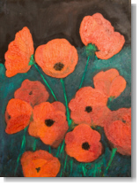 Mohnblüten 40 x 30 cm, Keilrahmen Öl auf Leinwand Das Bild zeigt mehrere Mohnblüten vor einem dunklen Hintergrund. Durch den dunklen Hintergrund kommt das Rot der Blüten sehr stark zur Geltung. |