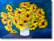 Sonnenblumen 30 x 40 cm Keilrahmen Öl auf Leinwand Als Vorlage für diesen Strauß diente der Strauß in dem Film Doktor Schiwago, der leuchtend in einer dunlen Umgebung zu sehen ist, als das Feldlazarett aufgelöst wird. |