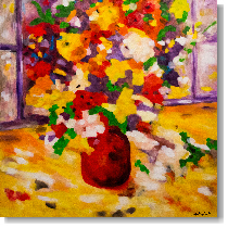 Blumen im Fenster 60 x 60 cm Keilrahmen Öl auf Leinwand |