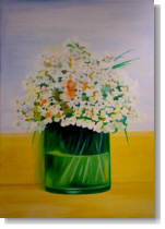 Strauß in grüner Glasvase 70 x 50 cm Keilrahmen Öl auf Leinwand |