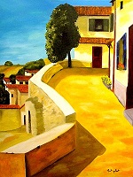 Pinie am Weg 30 x 40 cm Öl auf Leinwand, Keilrahmen Das Bild zeigt eine Pinie am Wegrand neben zwei Nutzgebäuden. Nur wer mit offenen Augen die Provence bereist, finden an jeder Wegbiegung solche idyllischen Motive. |