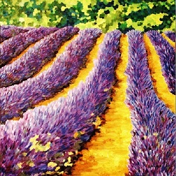 Hügeliges Lavendelfeld 100 x 100 cm Öl auf Leinwand, XL Keilrahmen Das Bild zeigt ein hügeliges Lavendelfeld in der alpinen Provence. Die hügelige Landschaft der Provence ist geprägt von den Kalksteinketten des Luberon, weiten Lavendelfeldern des Plateau de Valensole und malerischen Dörfern wie Gordes. Typisch sind sanfte Weinberge, Olivenhaine und wilde Schluchten. Die Naturparks Luberon und Verdon laden zum Besuch ein. |