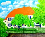 Haus Kückelhaus 50 x 50 cm, XL Keilrahmen Öl auf Leinwand Drei Jahrzehnte lebte Hugo Kückelhaus in Soest. Sein Wohnhaus, das am Eingang des Bergenthal-Parks liegt, bezeichnete er als "Das unbezahlbare Haus". 1954 erwarb er die damals stark verfallene Scheune und baute sie zu einem Wohnhaus mit Werkstatt um. Mit unbezahlbar waren nicht die Kosten gemeint, sondern die Atmosphäre, die sein Schaffen stark beeinflusst hat. Hier lässt sich nachempfinden, was Kückelhaus als organlogisches Bauen verstand. Welchen entscheidenden Einfluss Farbgestaltung und Materialbedeutung auf das Wohlgefühl des Menschen nehmen. |